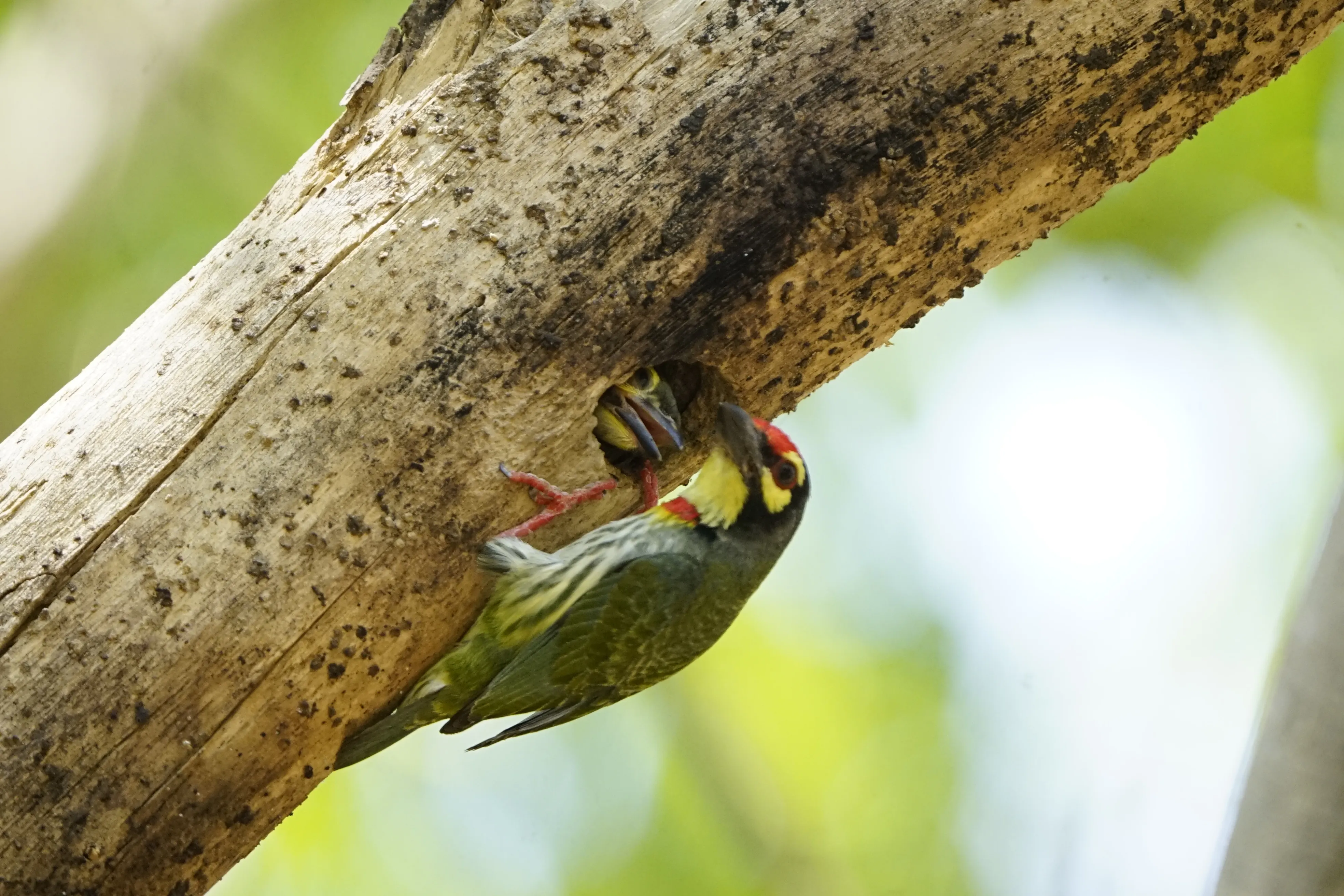 Beyond the standard courtship rituals, Coppersmith Barbets exhibit intriguing behaviors:(Bird Ecology Study Group)